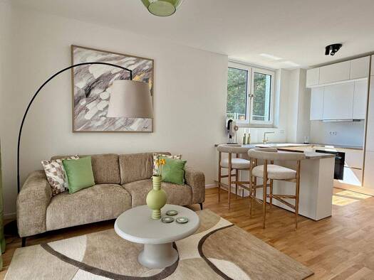 Antonia ist zeitgemäße, elegante Architektur, die sich harmonisch in die durch Baudenkmäler geprägte Nachbarschaft einfügt. Dies gelingt durch sanfte Rundungen der Fassaden, die warmen, sandigen Farb...